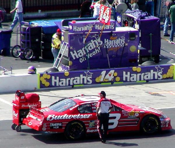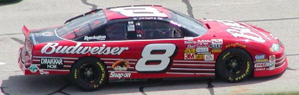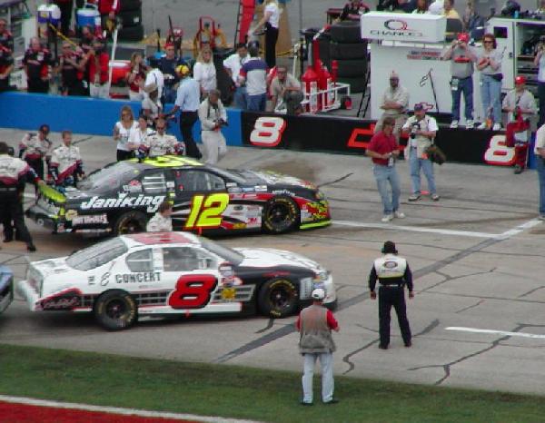 Atlanta Motor Speedway, one of the fastest tracks on the NASCAR circuit. Bobby Labonte won the spring race of 2003 race and did some victory doughnuts afterwards. Dale Jr. ran well that day too, finishing third. I love the new paint scheme for the 2003 DEI cars, with the 3 stripes to form the big E on the doors.