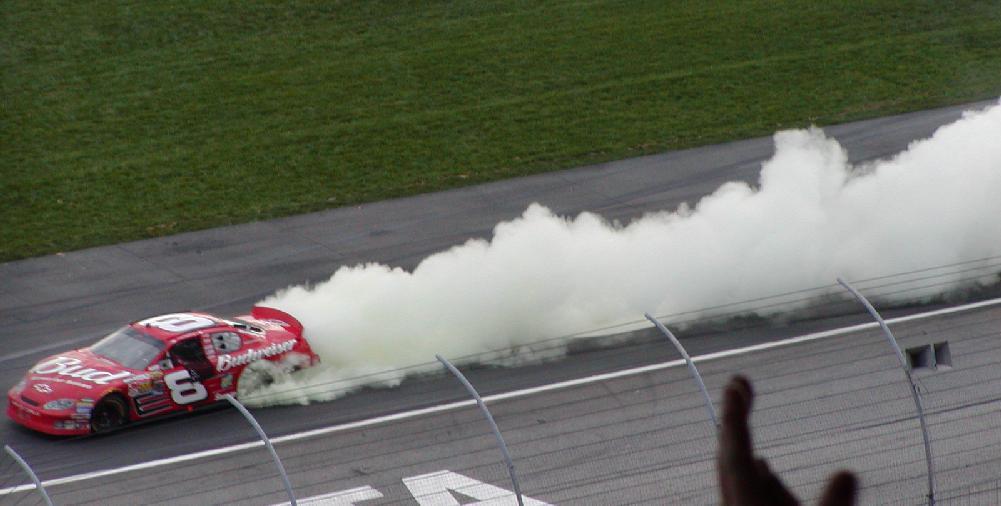 Atlanta, March 2004. After a stunning pre-race ceremony saluting the armed forces, including a Chinook helicopter bringing in the pace car and a flyover of A-10 fighter planes, they got down to racing. The day ended with Dale Jr. lighting up the tires in a victory celebration.